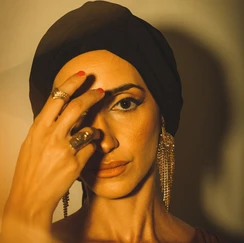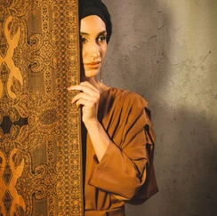 Per Agostina, ho costruito un servizio ispirato alla cultura araba che ama.Tutto è partito da una musica che mi aveva colpito — Mosaïque di Ash — e da lì ho unito fotografia, make-up e tessuti del suo guardaroba.
